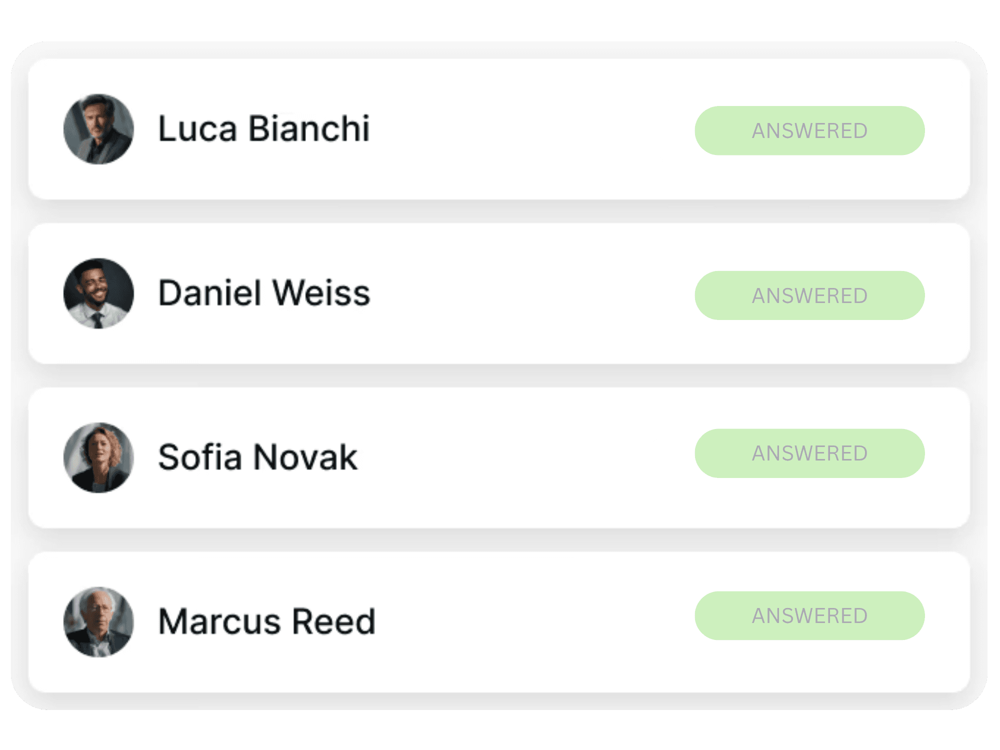 When you can't pick up, your calls automatically forward to Availly. It answers within seconds using your business name, has a natural conversation with the caller, captures their name, number, address, and what they need, then sends you a full text summary and texts the caller a confirmation. You call them back. Simple as that.