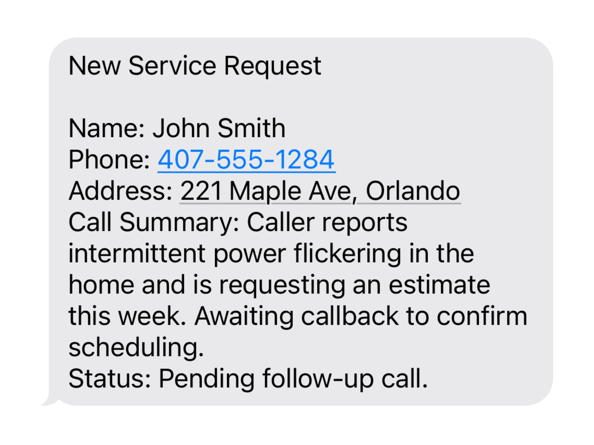 Not voicemail. Not an answering service. A system that captures the job and texts you in real time.
